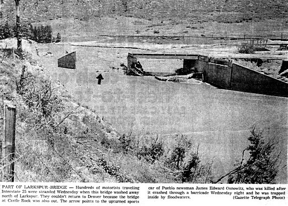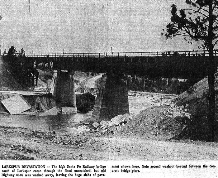 Larkspur were gone so the only way out was by helicopter. The Santa Fe trestle was not washed out so if you could walk the RR tracks you could get across to the other side.