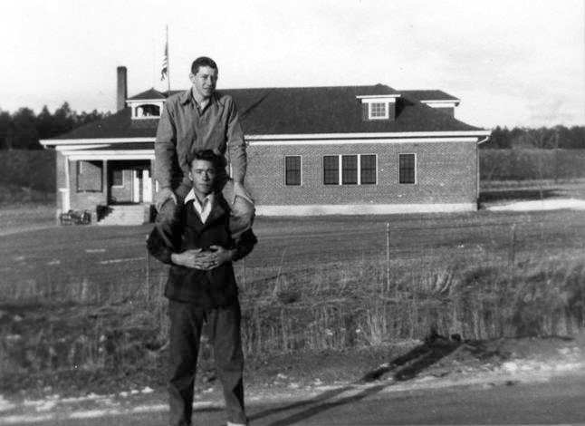 Keith Webster and Worthing Taylor (below) standing in front of the Larkspur School Building, 1943-1944. Courtesy of the Larkspur Historical Society.