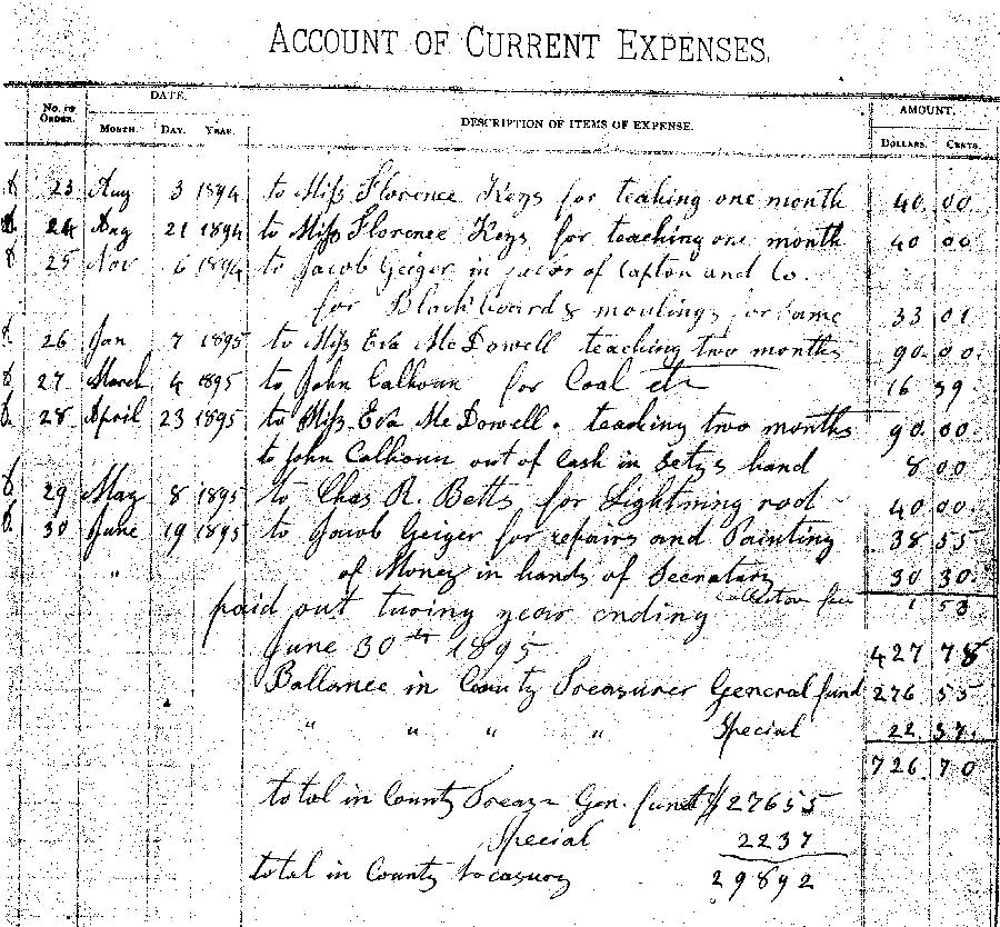 The teacher in 1894 was Effie McDowell, seated on the left. Twenty-eight