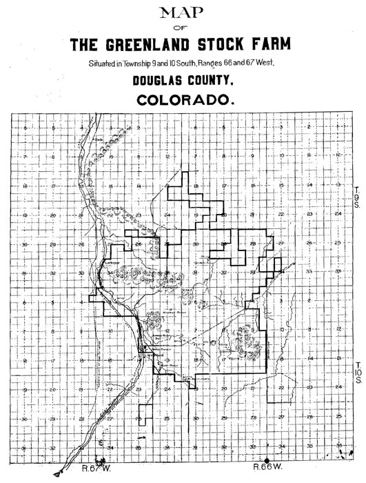 Greenland Breeding Farm was purchased in 1906 by John W. Higby and C.C. Hemming, an officer of the El Paso National Bank of Colorado Springs. The name was changed to Greenland Land and Cattle Company and was recognized all over the United States for its fine selection of Shorthorn, Galloway and Hereford cattle as well as thoroughbred horses. At one time the 15,000 plus acres grazed as many as 1,600 head of cattle and 500 horses as well as raising 7000 bushels of wheat, oats, rye, corn and barley. The ranch stayed in the Higby family until it was sold in 1980 to William E. Simon, U.S. Treasury Secretary, Bruce Shepard, a developer and the Oklahoma Publishing Company.