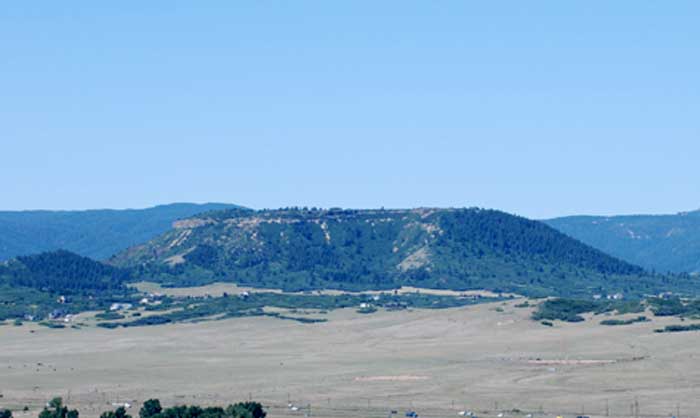 Dawson Butte sometimes known as Dawson Mountain was named for an early homesteader on West Plum Creek named Thomas Dawson. Mr. Dawson came to the area in the early 1860’s and staked out squatters rights below the butte. He was the first postmaster at Bear Canyon. Dawson Butte is a 7,476 foot landmark for both East and West Plum Creek. The 1820 Stephen Long expedition climbed the butte to determine their location. This was one of the early expeditions through Plum Creek and this mountain is documented in field notes. Because of the unusual washes on the side and the way the sun would shadow on those washes the turn of the century settlers could always tell what time it was. The Dawson arkose geological formation which extends over much of Douglas County derived its name from Thomas Dawson and Dawson Butte.